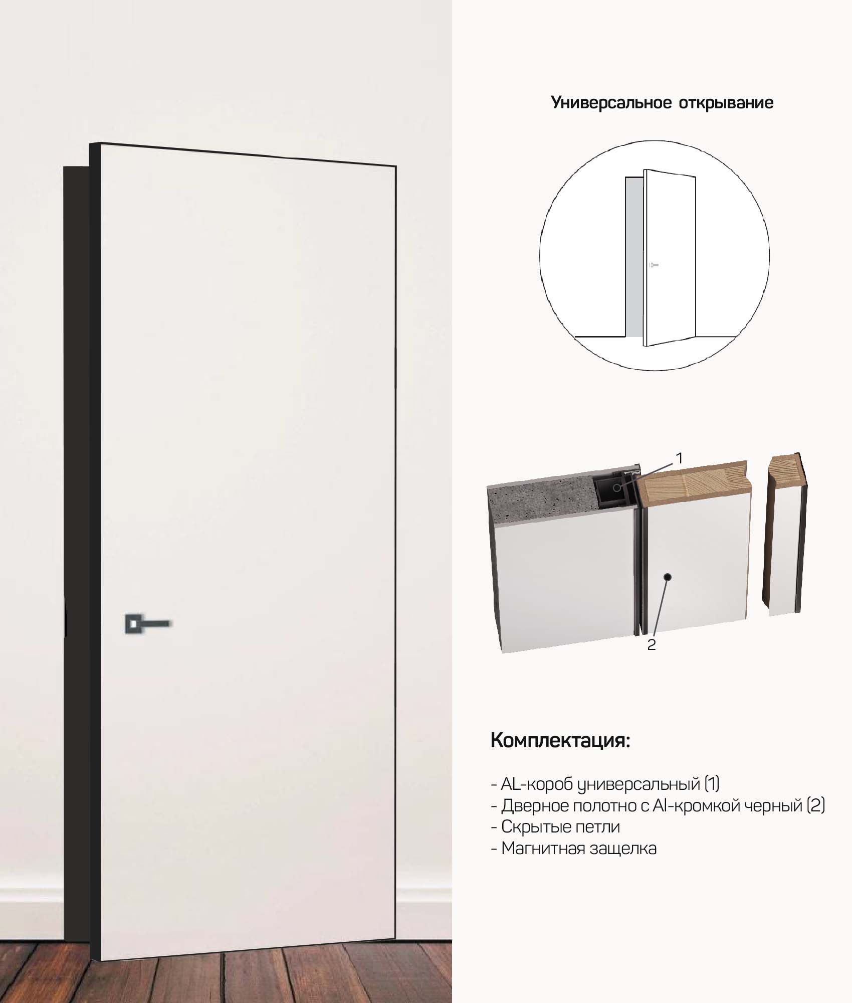 петли скрытые (2 шт.) замок магнитный (1 шт.)