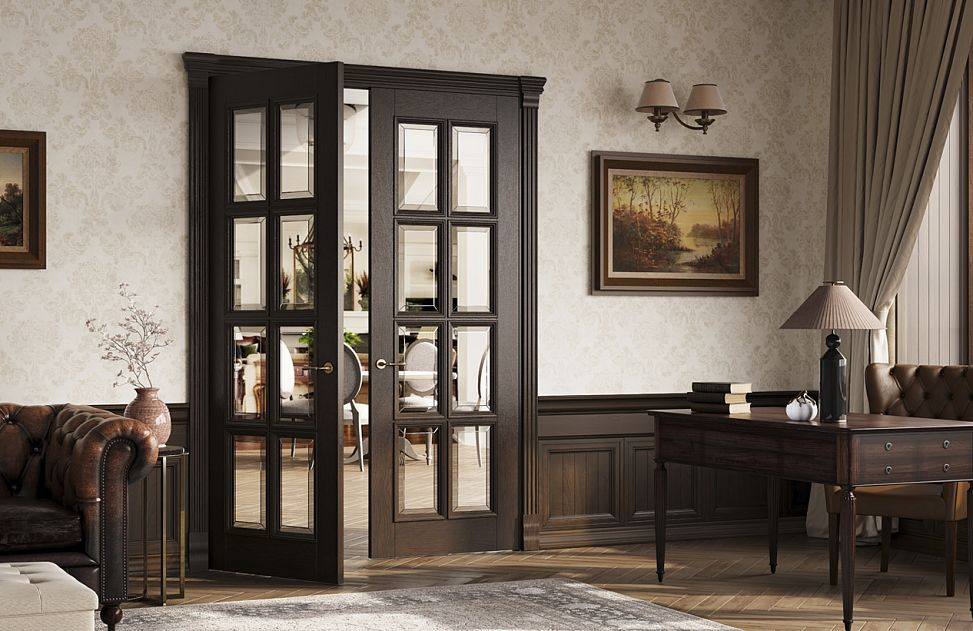 Шпонированные межкомнатные двери – это современные изделия из листов МДФ, покрытые тонким срезом натурального дерева. В качестве облицовки используется натуральный шпон ценных пород древесины, таких как шпон дуба, орех или ясень, что придает дверным полотнам благородный внешний вид и сохраняет природный рисунок.