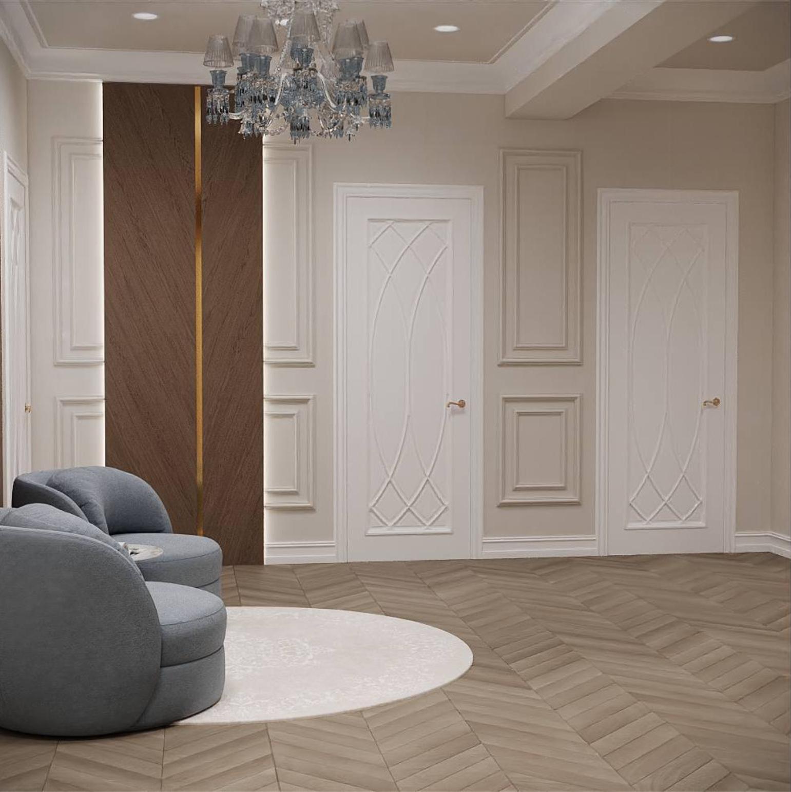 Двери Амели сразу полюбились заказчикам, за счет своих мягких геометрических узоров, которые подчеркивают легкость нашего интерьера и прекрасно вписываются в дизайн.