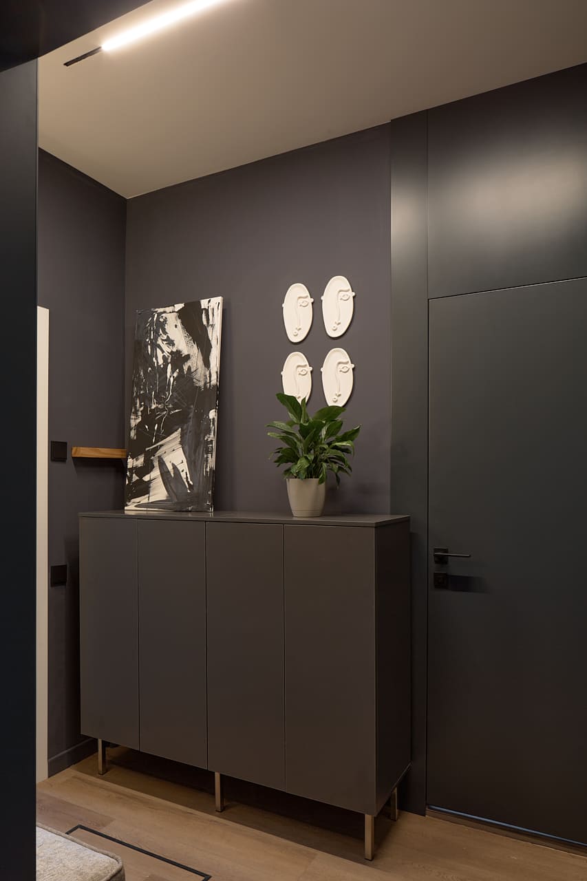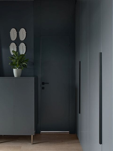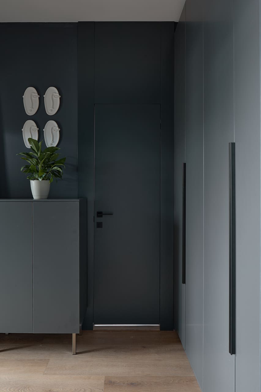 Двери Porte в оттенке атрацит идеально сочетаются с остальной отделкой, подчеркивая стиль и индивидуальность дизайна. В интерьере каждая деталь важна, и выбор изделий от фабрики «Терем» стал залогом качественного и эстетически привлекательного результата.
