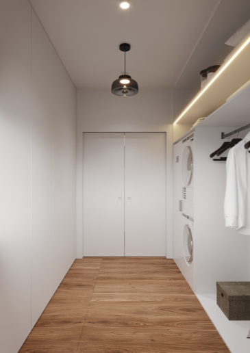 Особое внимание уделяется функциональности общих пространств: просторная кухня-гостиная с кухонным островом служит идеальным местом для семейного времяпрепровождения. Планировка включает несколько зон – гостевой санузел, постирочную и кладовую. Выход на террасу из гостиной создает дополнительное пространство для отдыха на свежем воздухе.