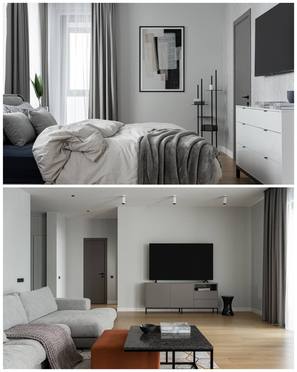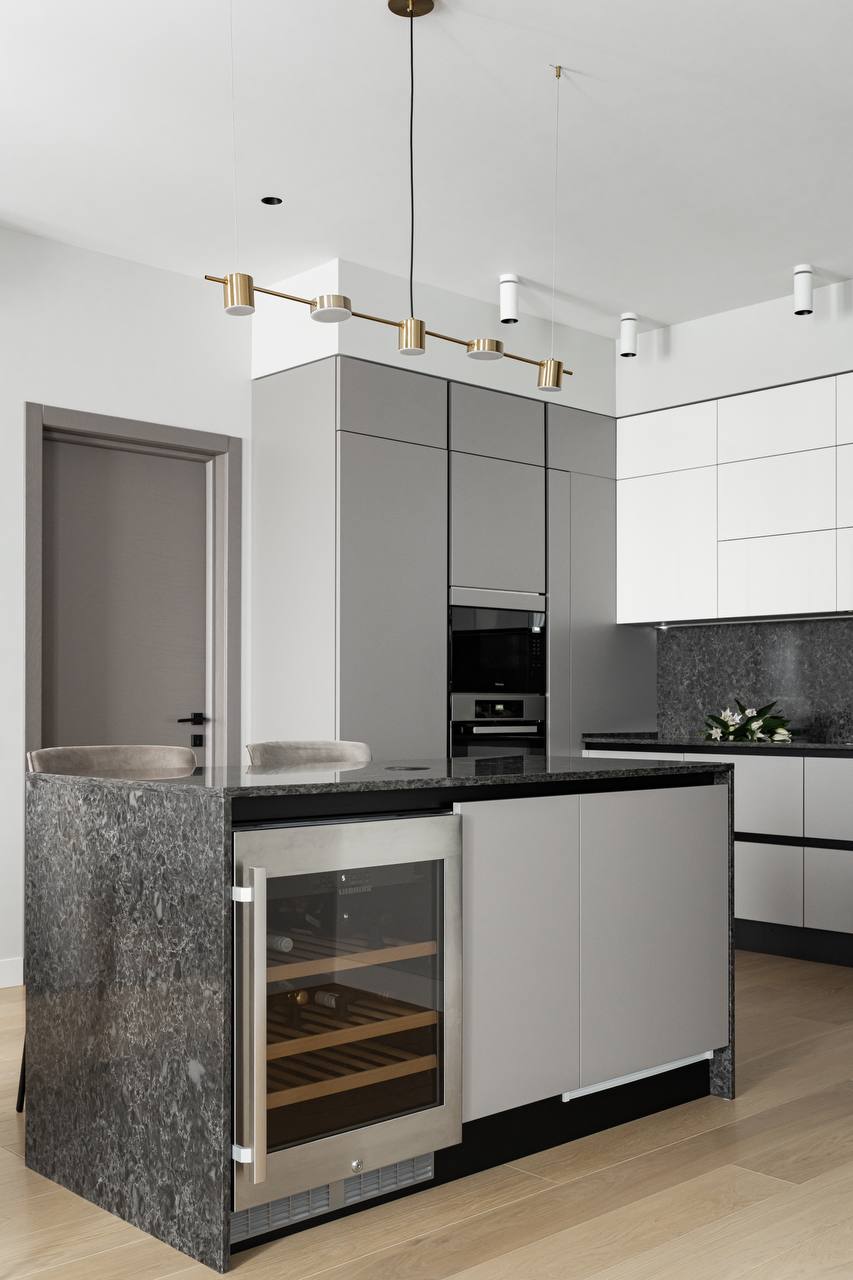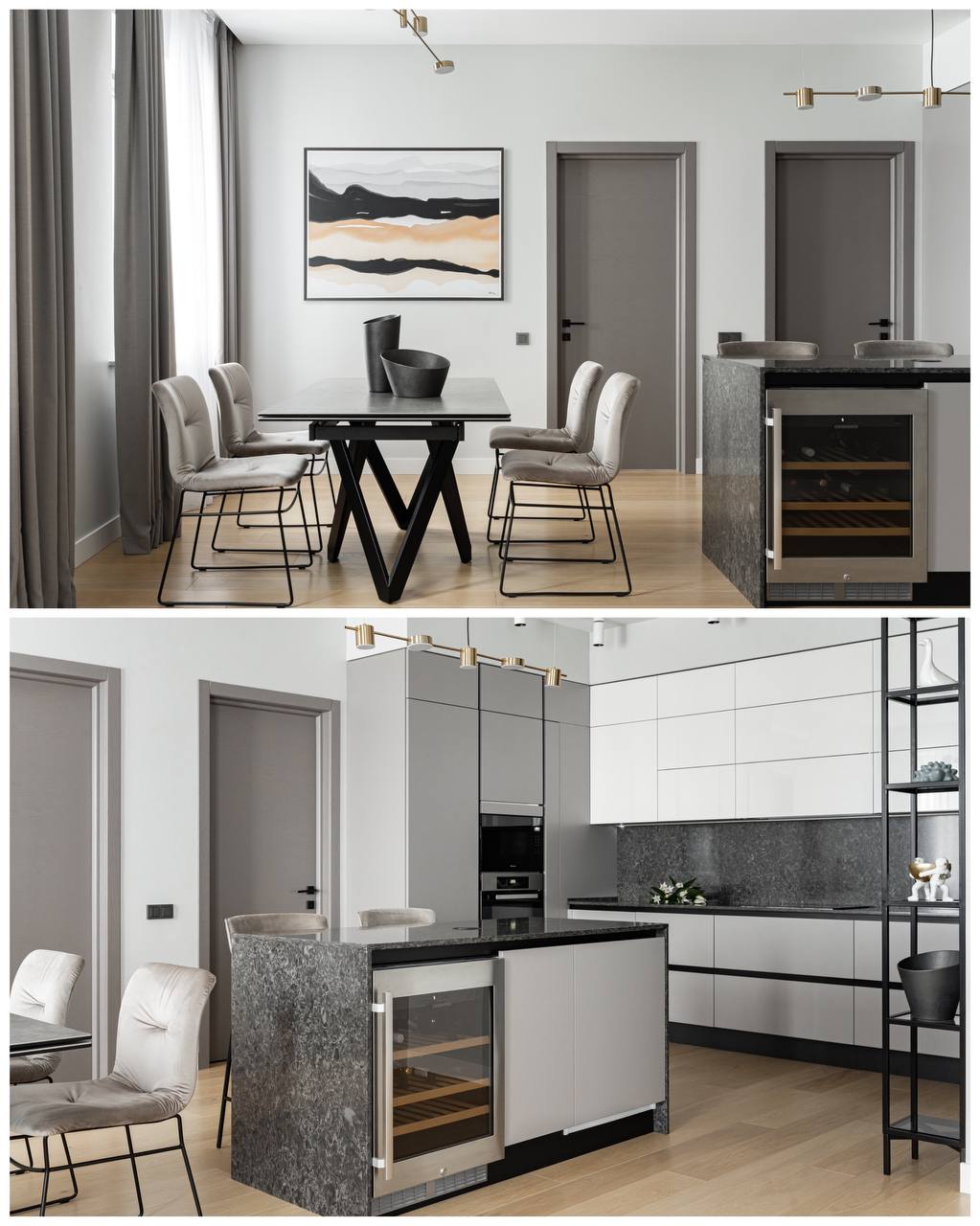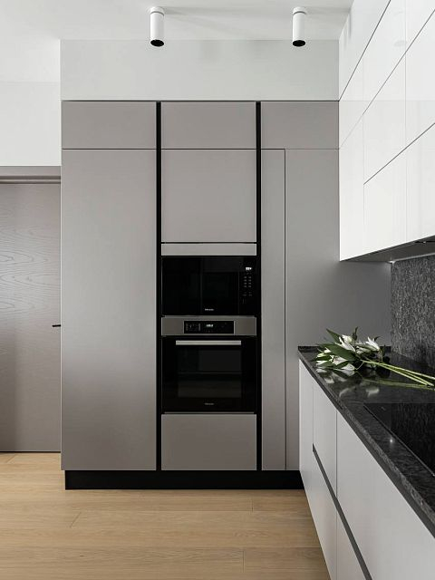 В проекте были использованы межкомнатные двери от фабрики Терем из коллекции Techno (модель Porte 01, в покрытии шпон «крашенный ясень»), которые со слов самого дизайнера отлично гармонируют с интерьером и задают определенный ритм фону.Приятно внести свой вклад в такой стильный интерьер. Благодарим за доверие Анастасию Никитину.
