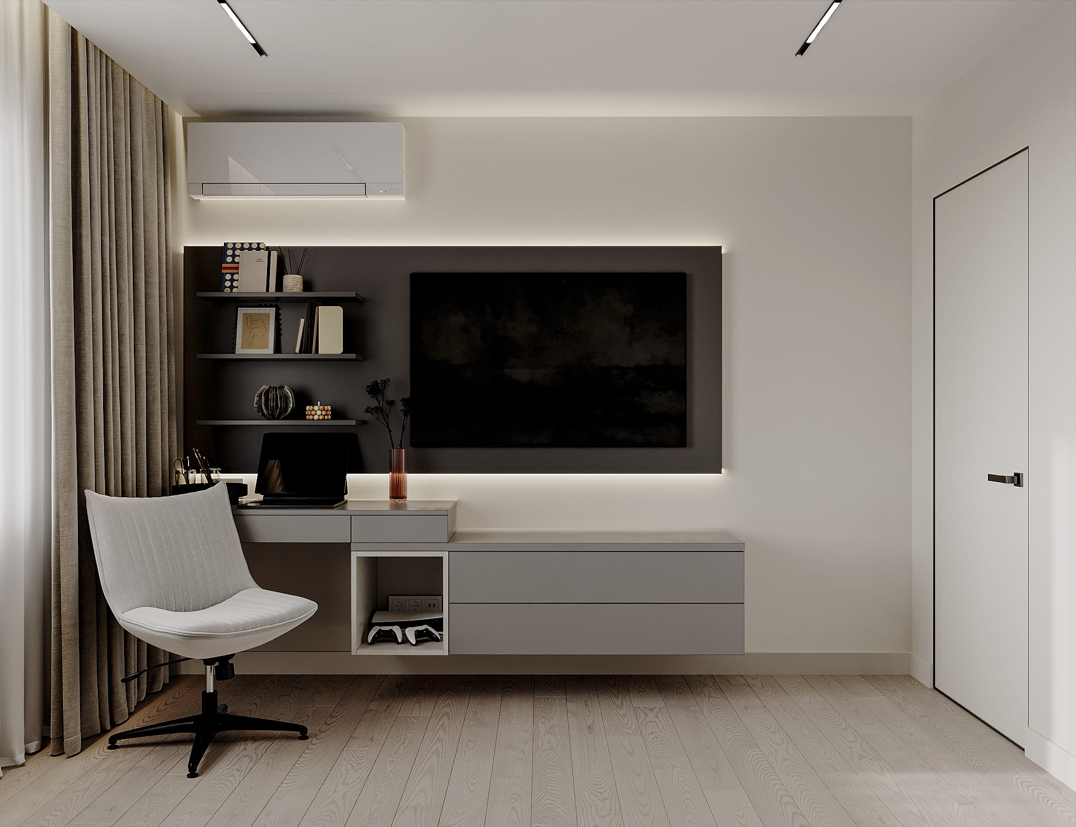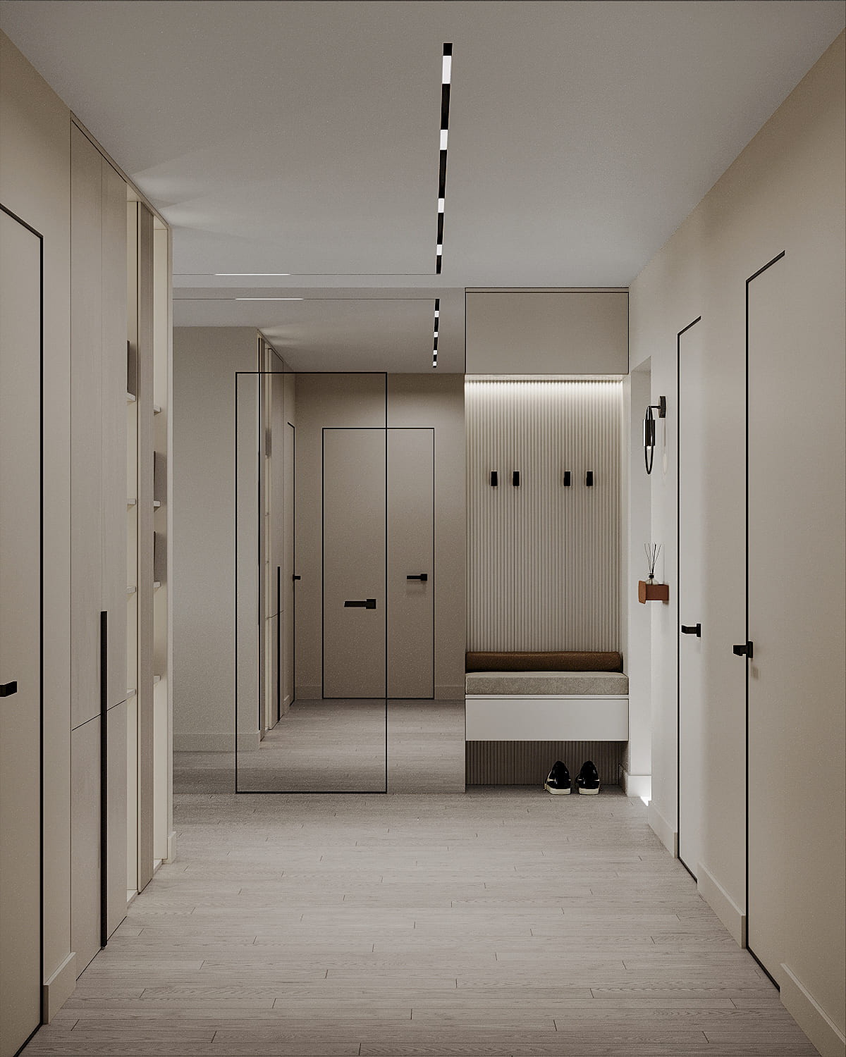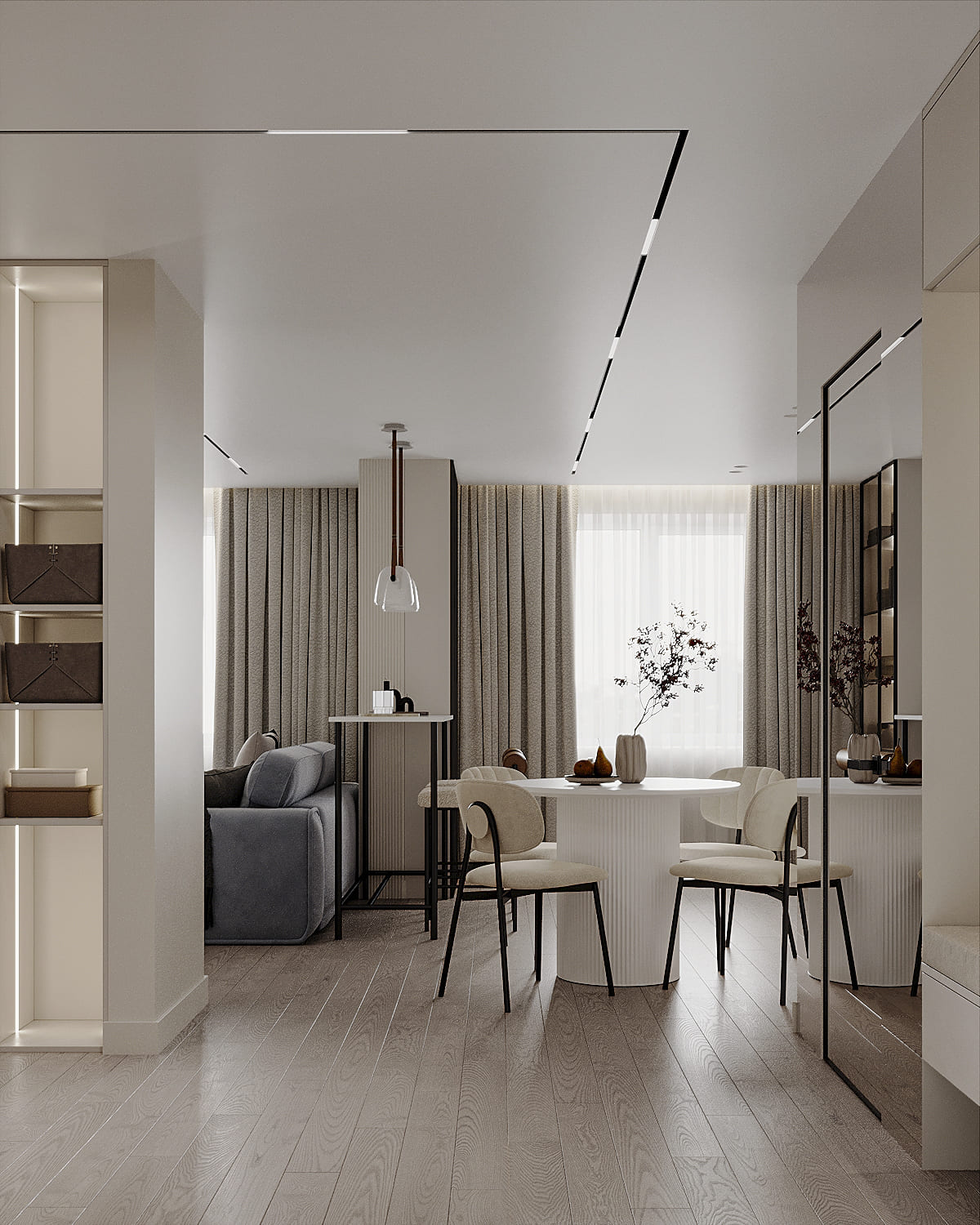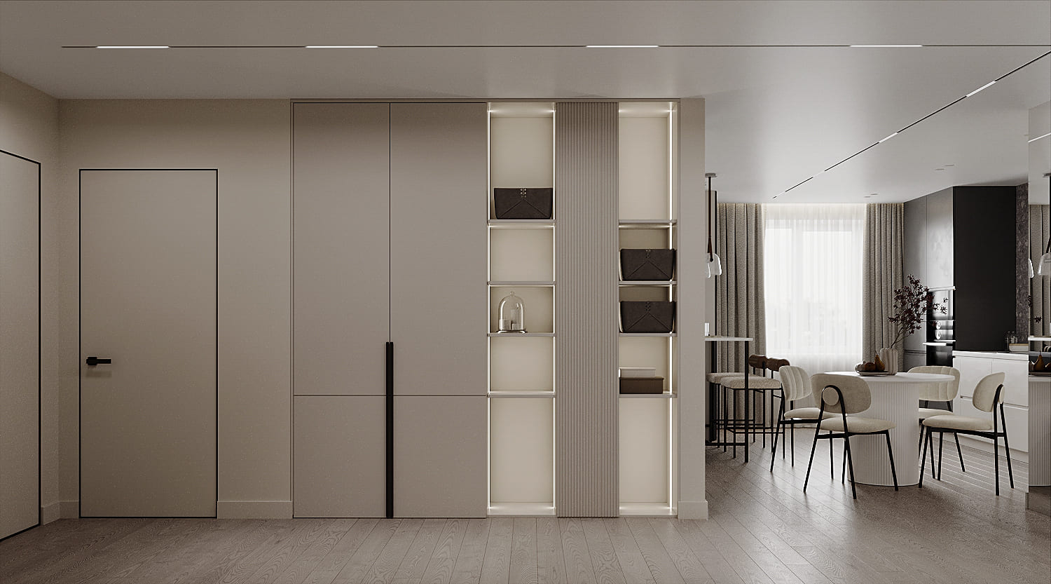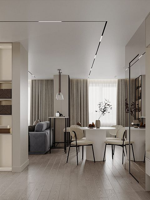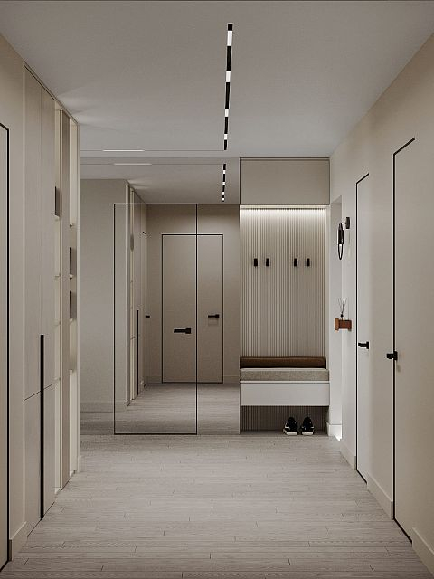 В данном проекте квартиры акцент сделан на создании уюта и гармонии. Использование межкомнатной двери скрытого монтажа под покраску позволило достичь визуальной целостности пространства и подчеркнуть элегантность интерьера.