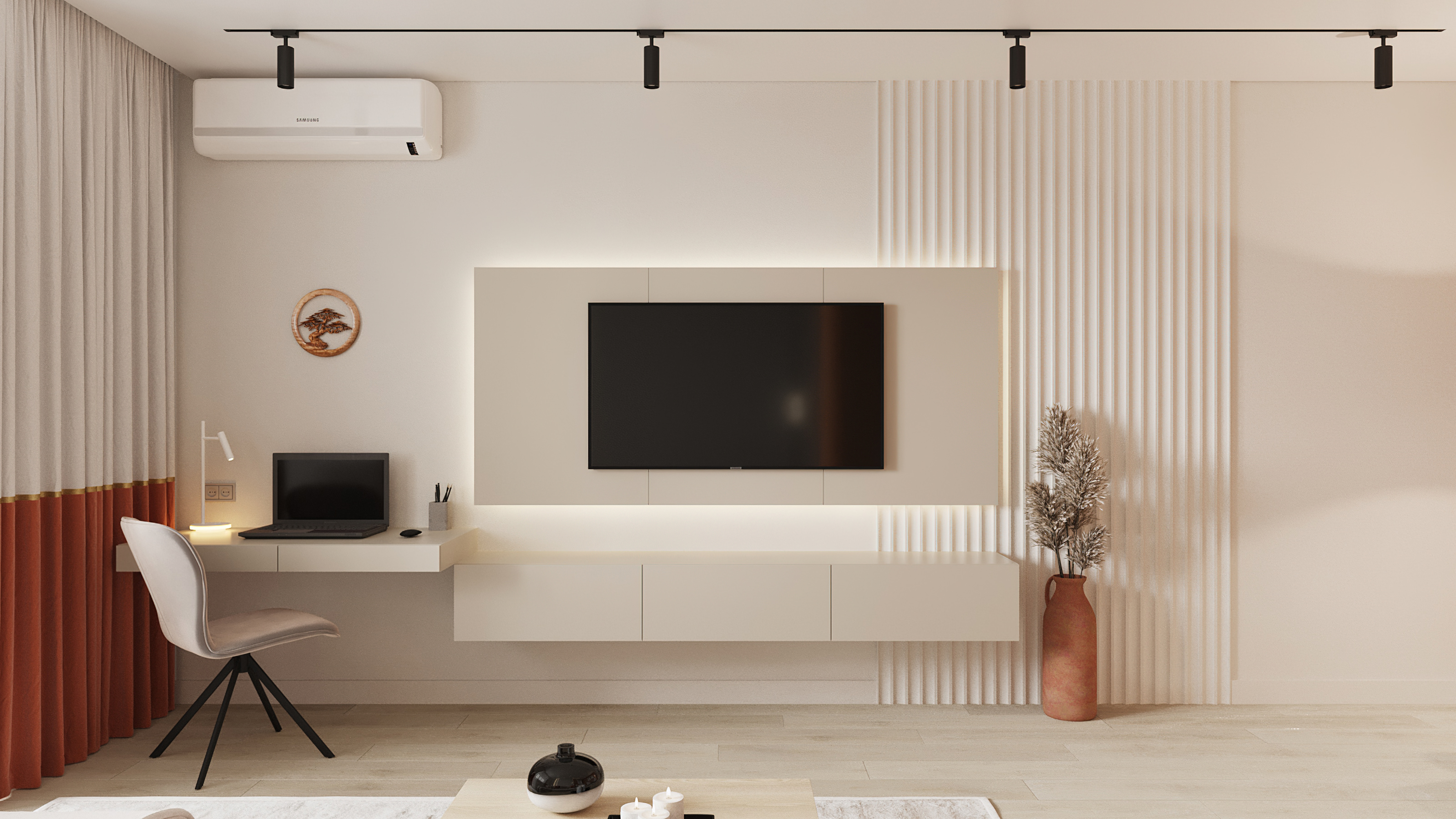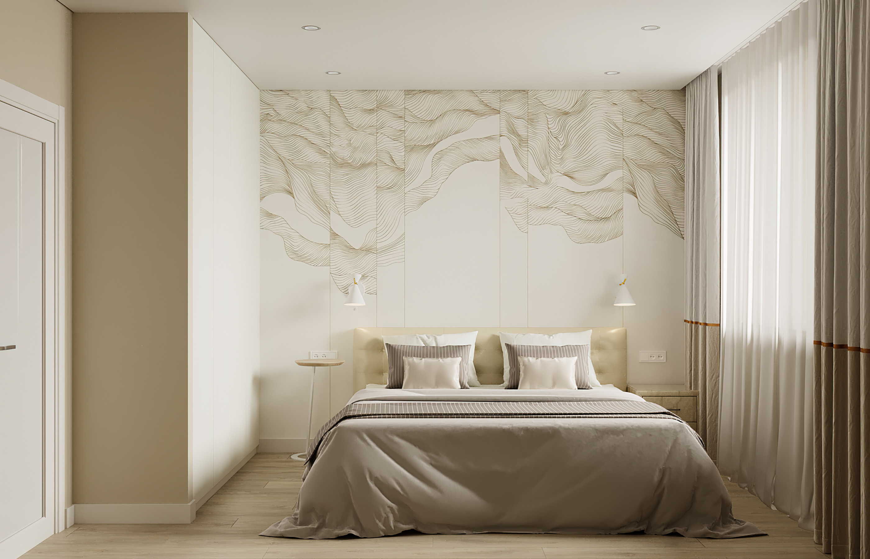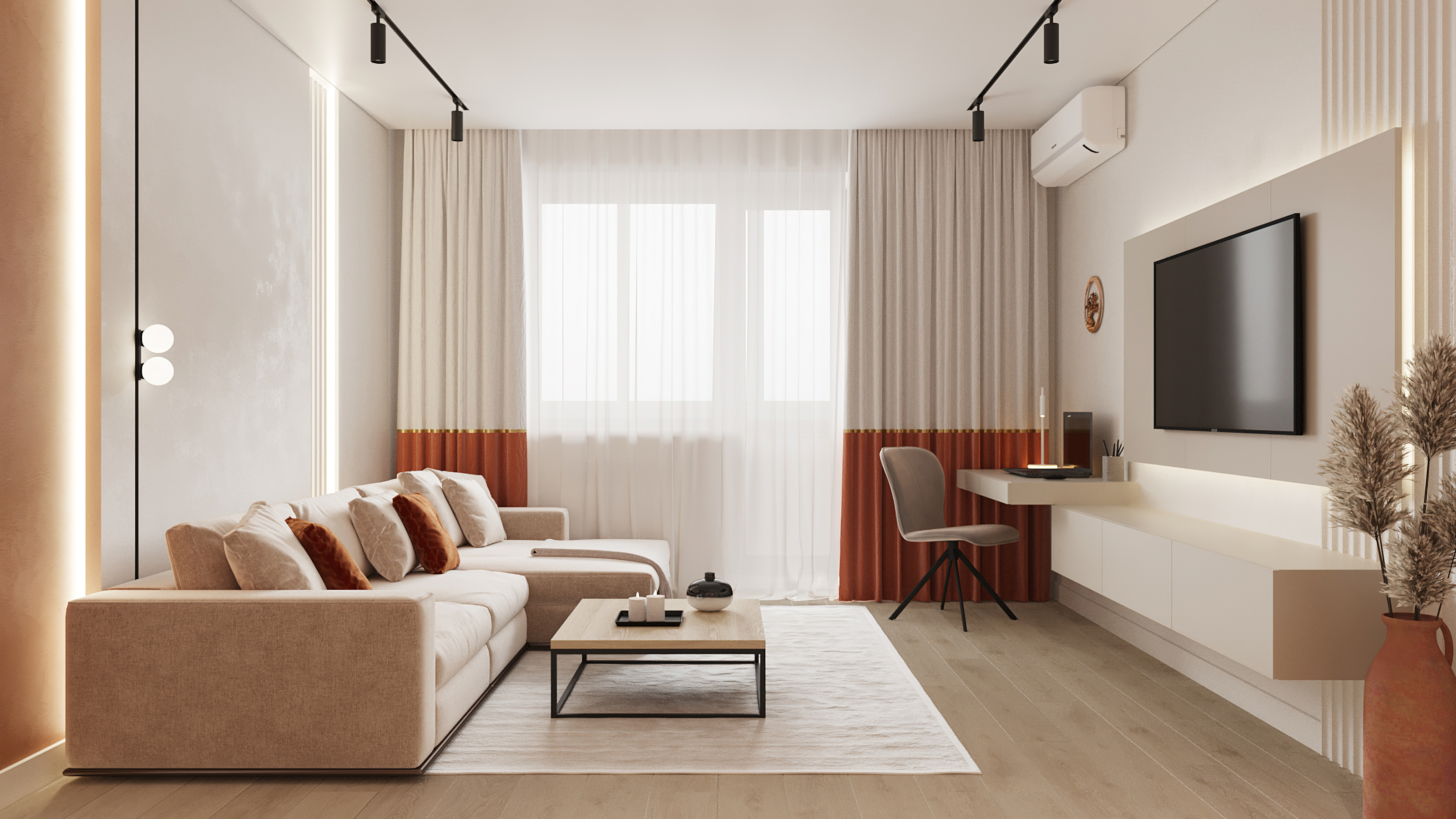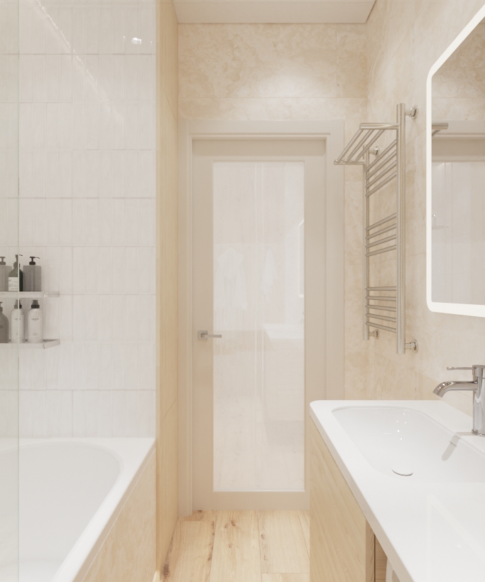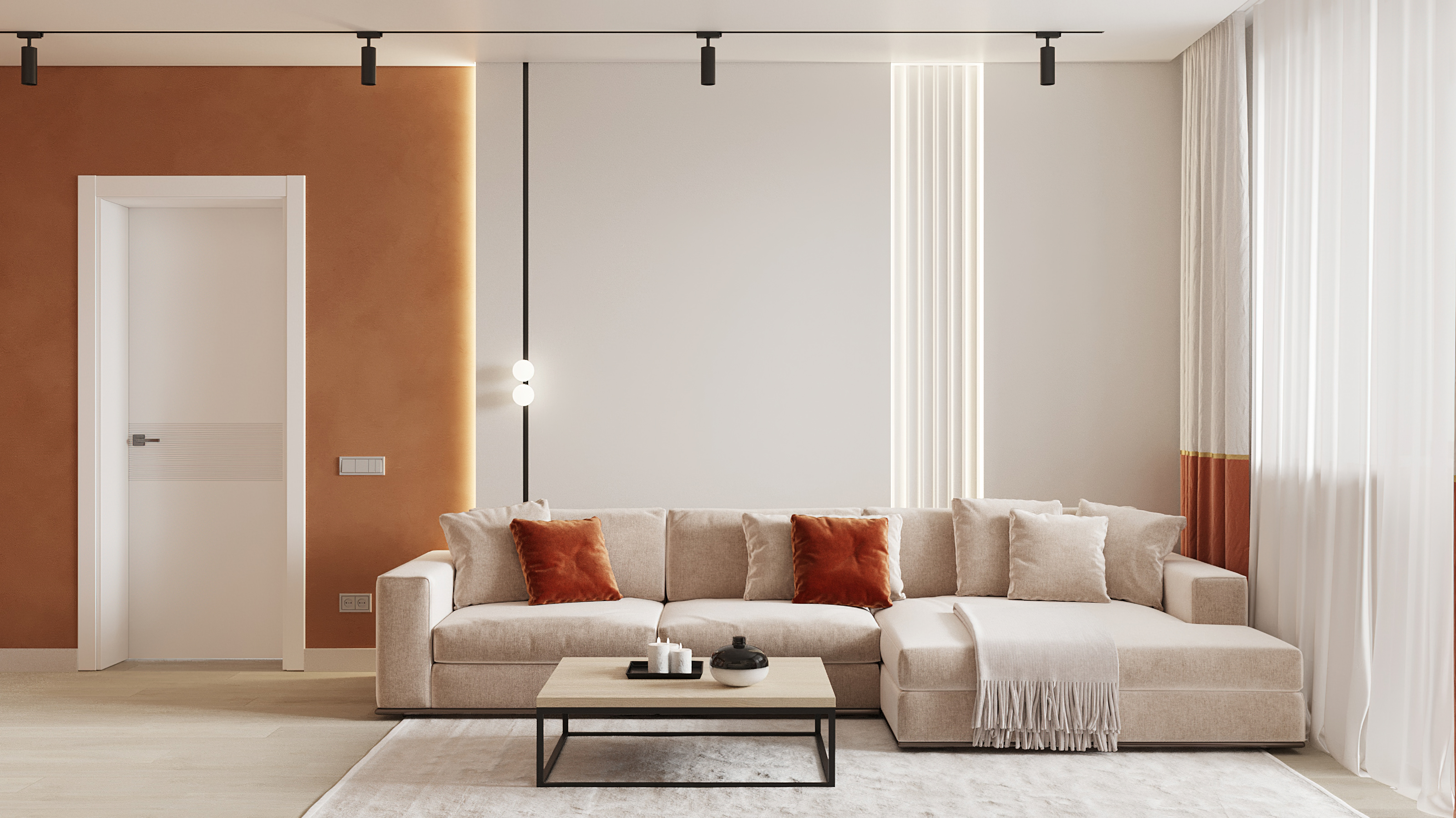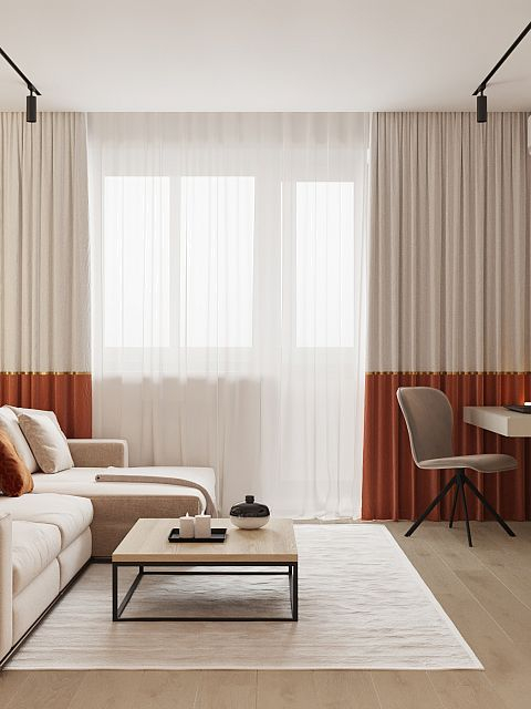 Уютный, легкий интерьер в современном стиле. Естественные природные оттенки создают уют и способствуют расслаблению. А сочный оранжевый, что использован в гостинной добавляет жизнерадостности и динамичности, что полностью отображает активную жизненную позицию своих владельцев. Двери Strada 01, 11 отлично вписались в интерьер, став гармоничным его продолжением. А дверь Mezzo 01 в белой эмали и горизонтальной фрезеровкой задает определённый ритм всему интерьеру, при этом не перетягивая на себя внимания.