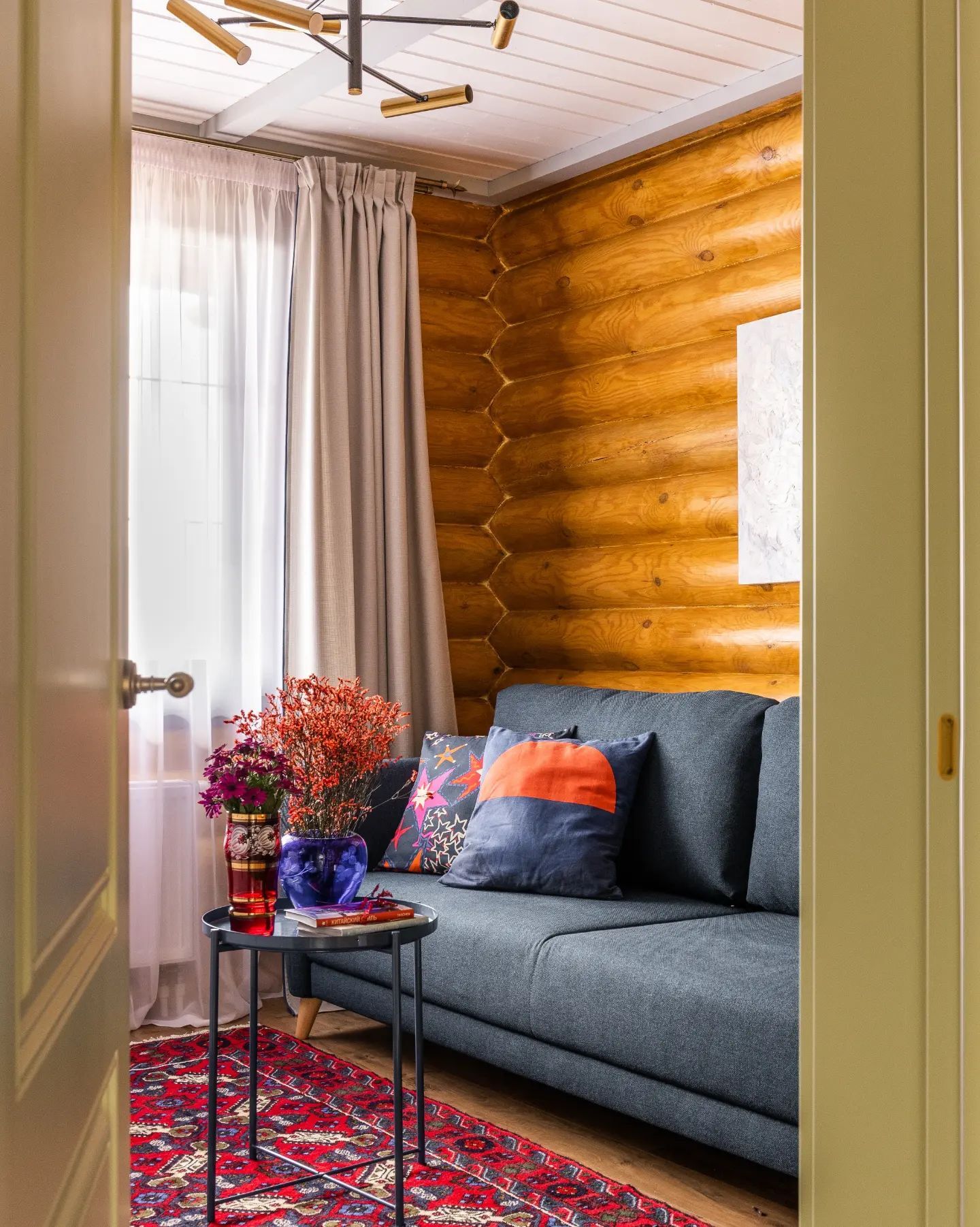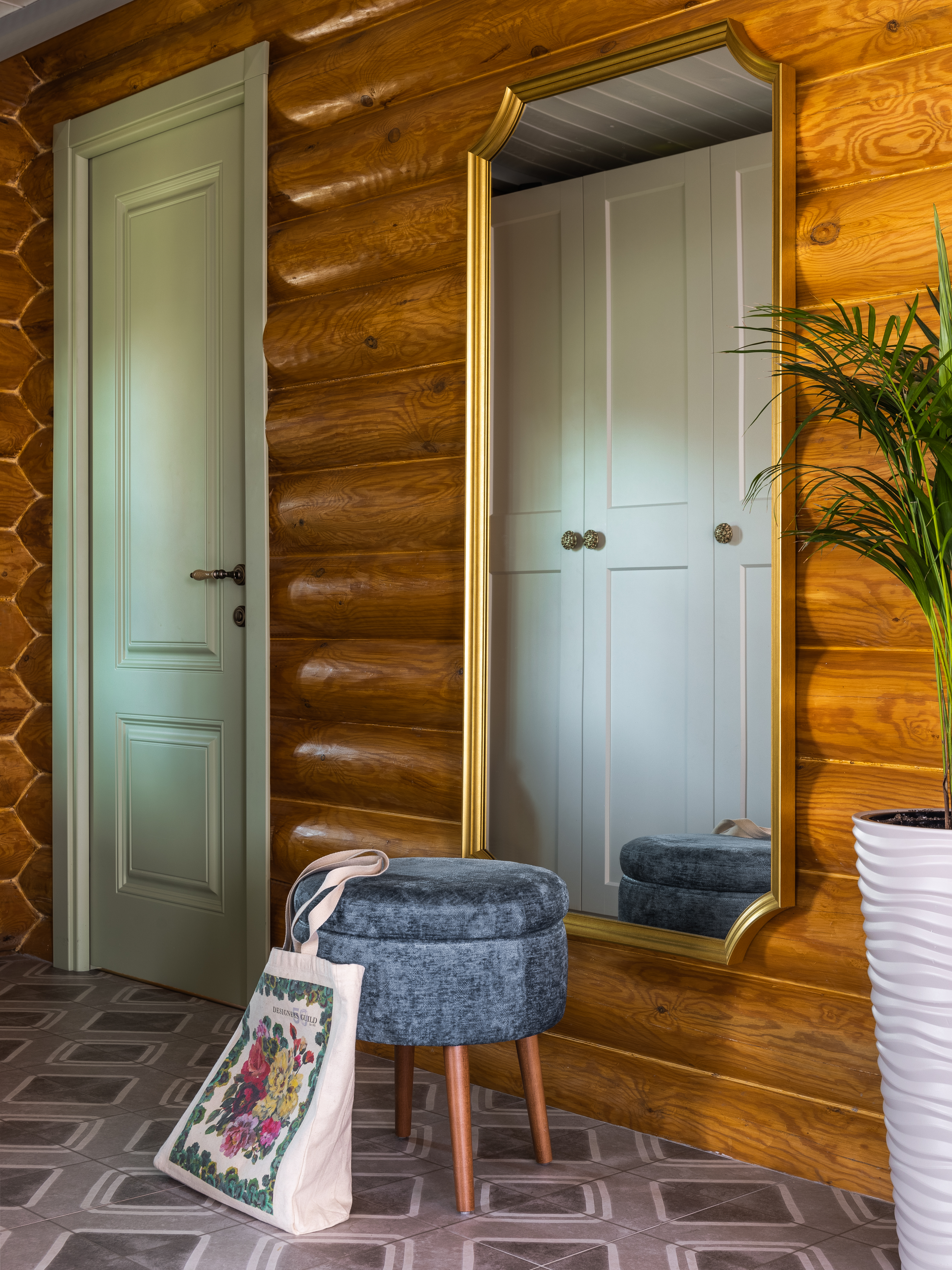 Насыщенный цвет золотистого дерева стен умело сбалансирован спокойными цветами текстиля и мебели. В этом же ключе выполнены двери Turin 2 из классической коллекции Modern, шафрановый цвет эмали которых абсолютно гармонично вписывается в общую концепцию проекта. А наличие ярких и красивых акцентных деталей – консолей, подушек, ваз и ламп – привнесло в интерьер нотки неповторимости и шарма.