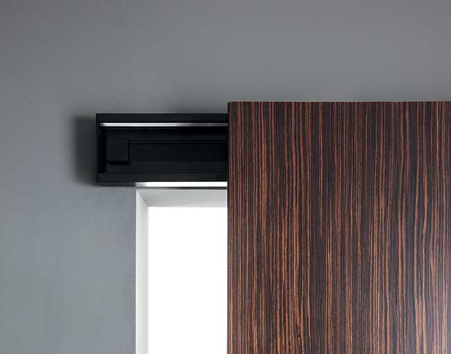 В откатном механизме DIVA полотно скользит вдоль проема по планке, которая устанавливается над дверным проемом. Механизм смотрится минималистично и технологично, поэтому отлично вписывается в современные стили интерьера.