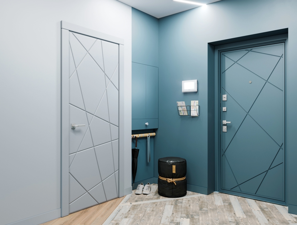 Компланарная система представляет собой особую конструкцию короба, когда полотно двери, наличники и стена располагаются в одной плоскости. Компланарная система устанавливается на скрытых петлях.