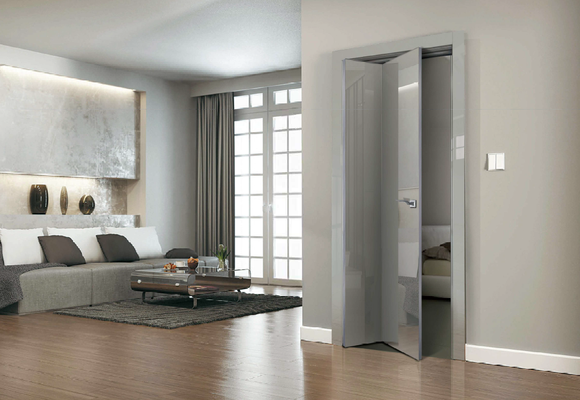Складные механизмы особенно актуальны для помещений с неудобной планировкой, где стандартные распашные или раздвижные межкомнатные двери не подходят, служат отличным решением в узких коридорах, проходах.