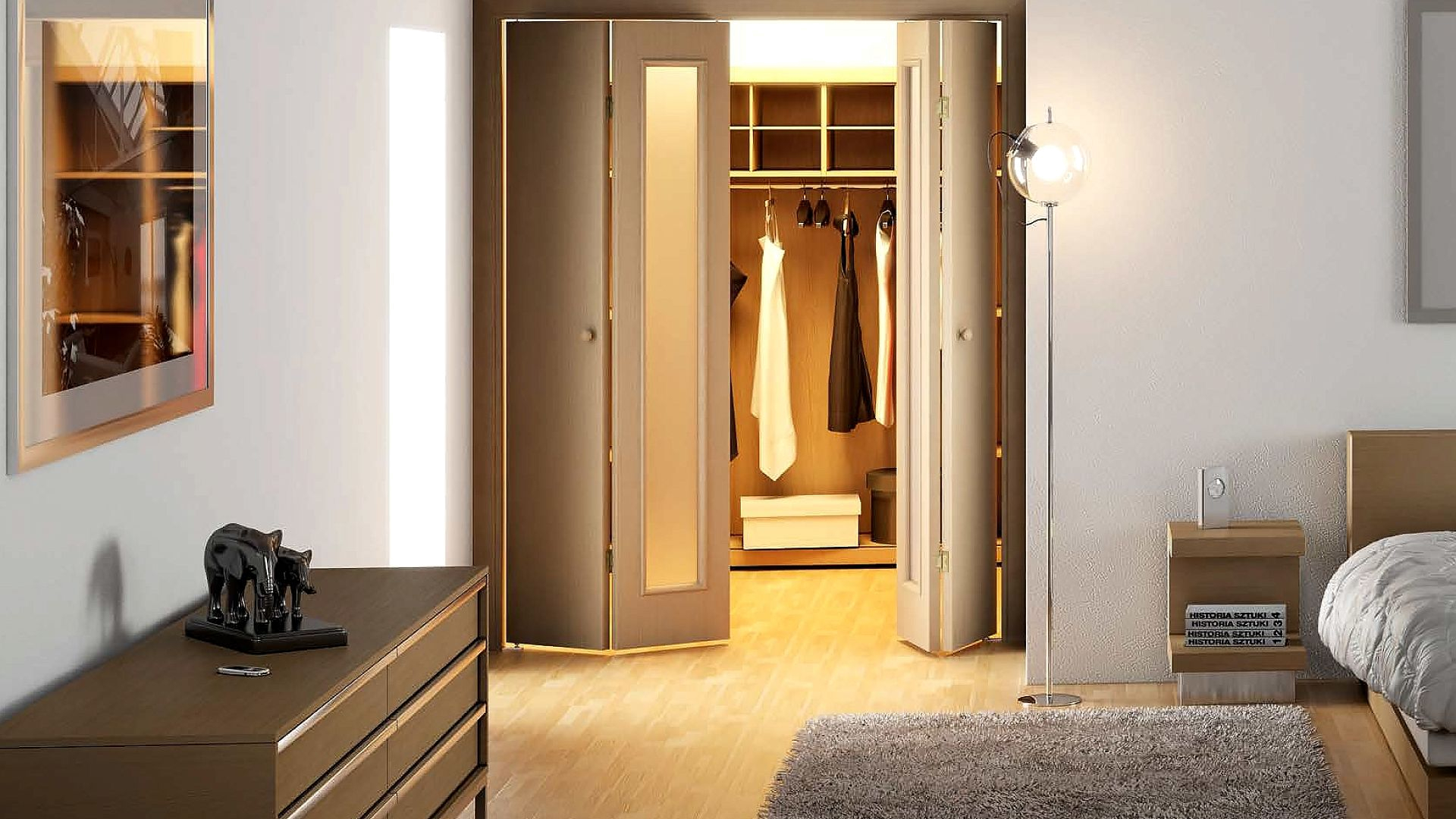 Например, межкомнатные двери-книжки. Такой вариант - это не только модный технологичный элемент интерьера, но еще и практичное решение.